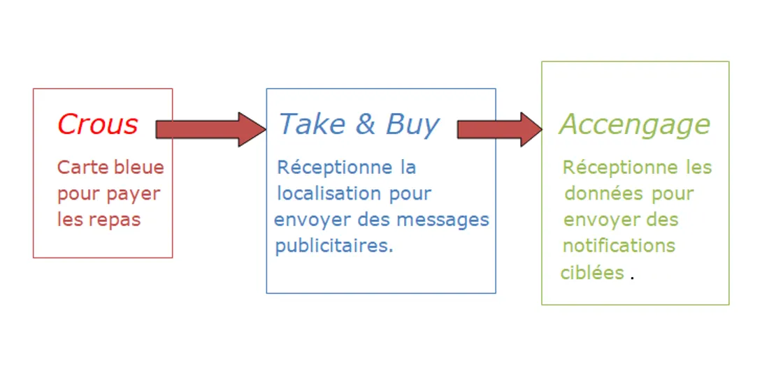 C’est un étudiant en informatique lyonnais qui l'a découvert. Les données géographiques seraient récupérées par le Crous qui les transmettrait à un site proposant à des entreprises de "cibler leurs clients potentiels en analysant leurs habitudes". Ce dernier les envoie à une entreprise nommée Take & Buy (spécialisée dans l’envoi de messages publicitaires mobiles). Enfin, elles arrivent sur Accengage, société qui partage des notifications sur smartphones.