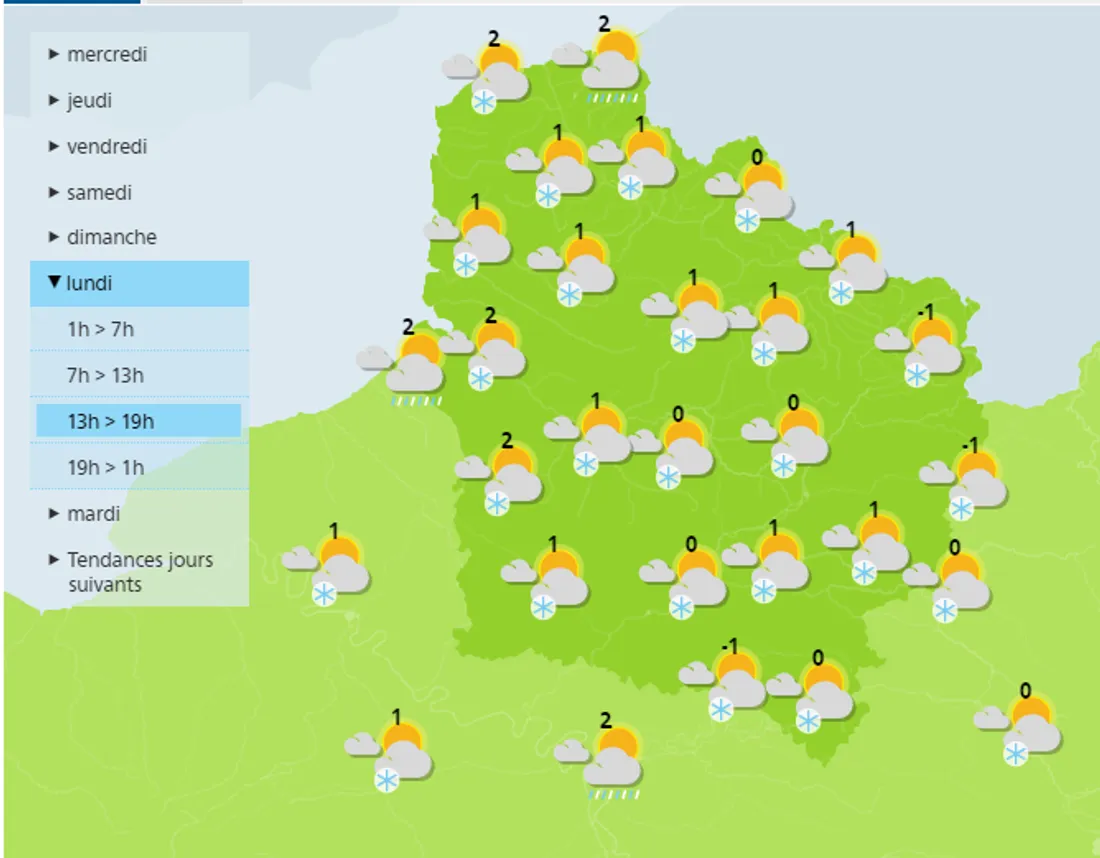 Selon les prévisions de Météo France, le gel et la neige devraient êter de retour dans les Hauts-de-France dès dimanche soir.