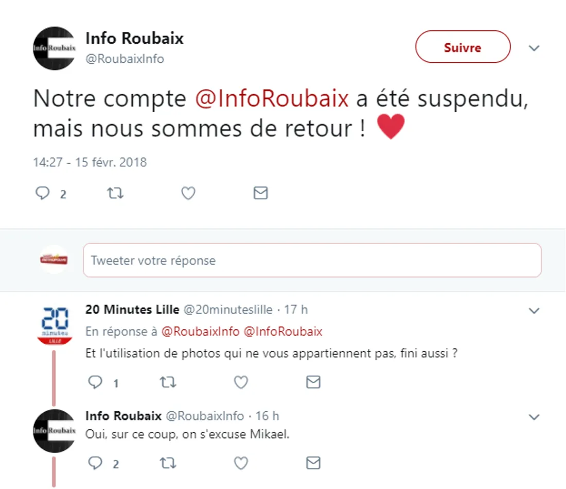 @InfoRoubaix suspendu de Twitter, accusé d'avoir diffusé des "Fake News"