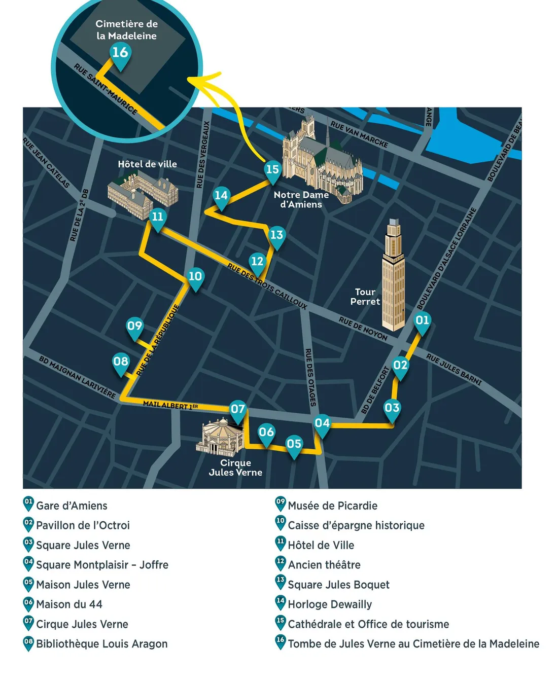 Aronnax se compose de 16 étapes culturelles, littéraires ou touristiques, dans les rues de la ville sur 2,6 kms.
