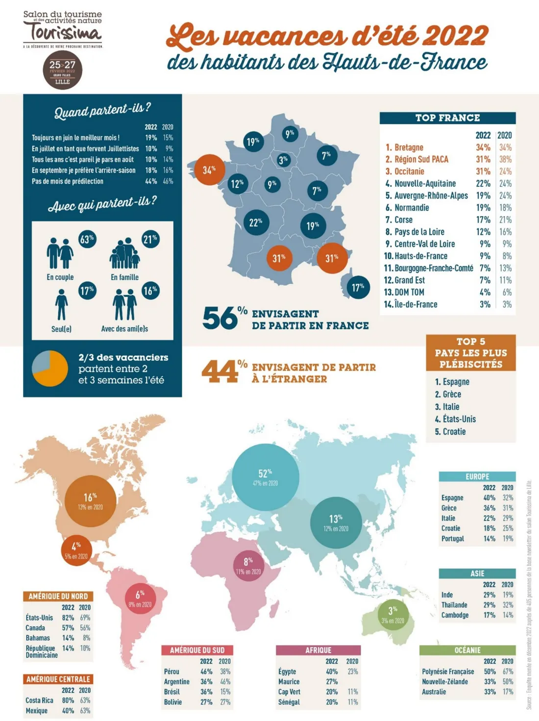 Le salon Tourissima est de retour cette année à Lille Grand Palais du 25 au 27 février. Sur place vous pourrez rencontrer des professionnels du secteur et planifier vos prochaines vacances ! A cette occasion le salon a lancé une grande enquête sur les intentions de voyages des habitants des Hauts-de-France pour cet été !