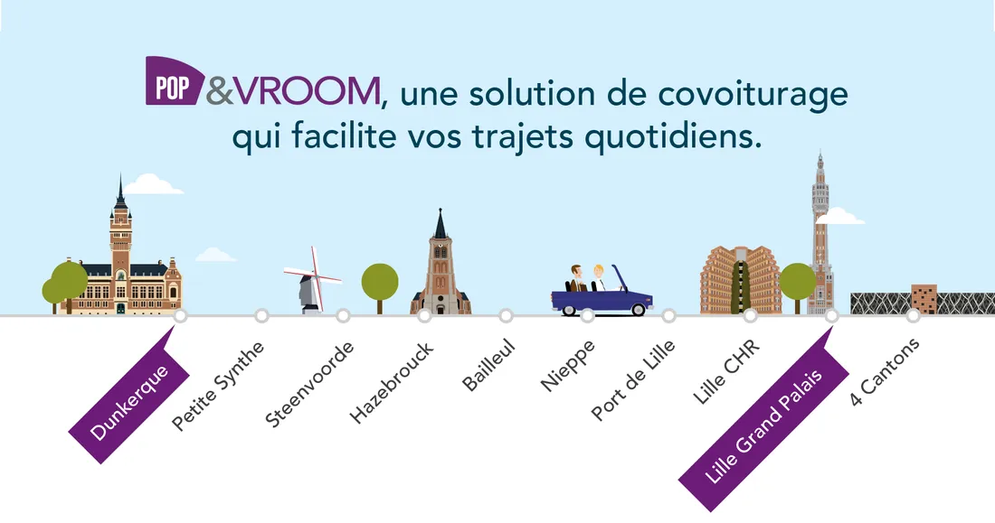 En 2014, la SNCF lance la plateforme ID Vroom, un service de covoiturage pour ceux qui empruntent quotidiennement la même route. L'appli Pop&Vroom est alors lancée, et depuis cette semaine, la ligne Dunkerque-Lille est disponible.